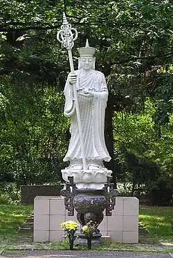 Am 3. August 2003 wurde auf dem Friedhof Ruhleben das erste buddhistische Gräberfeld Berlins eingeweiht.[9] Dieses im hinteren Teil des Friedhofs gelegene Feld dient der vietnamesisch-buddhistischen Gemeinde in Berlin zur Bestattung ihrer Toten. Ausgelegt ist die Anlage für 100 Erd- und 600 Urnenbestattungen. Im Zentrum wurde eine 4,30 Meter hohe Statue des Bodhisattva Tian Tan aufgestellt, einem Bodhisattva, der aus Liebe zu allen Lebewesen nicht ins Nirwana ging, um allen aus der Hölle zu helfen, bis keine Lebewesen mehr dort leben.