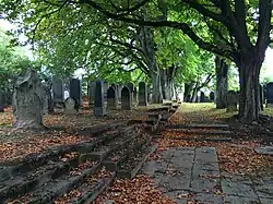 Hinter dem Tor am Steinkluppenweg liegt ein kleines Forum, von dem ein Längsweg durch den rund 875 Quadratmeter kleinen, rechteckigen Friedhof führt. Die Steine sind rituell nach Osten ausgerichtet, jedoch unterschiedlich gestaltet. Es finden sich schlichte Gedenksteine, aber auch elegante Obeliske und prächtige Ädikula-Monumente im klassizistischen Stil.[2]