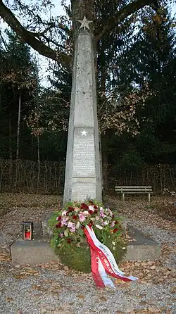 Der russische Teil der Anlage wurde für Soldaten und Kriegsgefangene der Roten Armee angelegt. Es sollen hier zwischen 24 und 43 Tote liegen. 1965 wurden 20 Tote aus anderen Friedhöfen in Vorarlberg exhumiert und hier beigesetzt. Es handelt sich dabei um die einzige geschlossene Friedhofsanlage für ehemalige Mitglieder der sowjetischen Streitkräfte in Vorarlberg. Die Pflege und Erhaltung erfolgt durch das Schwarze Kreuz.[9] Am Anfang befindet sich ein vierkantiger Obelisk aus Stein auf einem Sockel, der von einem Sowjetstern bekrönt wird. Auch auf dem vorderen Teil der Anlage (Wehrmachtsfriedhof) befinden sich im Bereich der Soldatengräber solche von russischen Staatsbürgern.