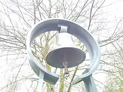 Die Friedhofsglocke mit dem Ton d3 hängt in einem Ring, der von zwei Stützen getragen wird.