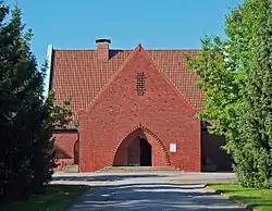 Auf dem nördlichen Gelände des Friedhofes liegt eine Kriegsgräberstätte mit 600 Opfern von Krieg und Gewaltherrschaft.[4] Sie besteht aus den in Berlin typischen Kissensteinen und einem etwa zwei Meter hohen Kreuz. Eine weitere Kriegsgräberstätte für etwa 50 Opfer des Ersten Weltkriegs befindet sich südlich der Feierhalle.