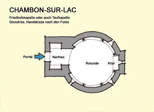 Die Friedhofskapelle am nordöstlichen Rand der französischen Gemeinde Chambon-sur-Lac ist ein Zentralbau, dessen Ursprünge vermutlich aus dem 10. Jahrhundert stammen.
