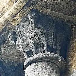 Ein anderes Kapitell zeigt eine Szene, die große Ähnlichkeit mit einem Kapitell an einer Chorkapelle der Stiftskirche Notre-Dame du Port in Clermont-Ferrand aufweist. Dargestellt ist ein Kelch, auf dessen Seiten ihm zugewandt zwei vierbeinige geflügelte Greife (Drachen) stehen, die mit ihren Krummschnäbeln gleichzeitig aus dem Kelch trinken. Mit ihren inneren Klauen greifen sie den Fuß des Kelchs.