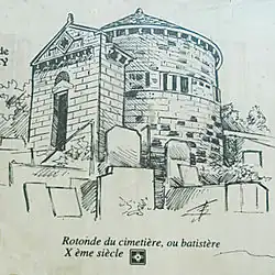 Es ist daher anzunehmen, dass das Bauwerk im oder vor dem 10. Jahrhundert[2], zunächst als Oratorium, vielleicht eines der Templer, oder als Taufkapelle errichtet und genutzt worden ist, und das ohne den es heute umgebenden Friedhof. In der Karolingerzeit im 8. Jahrhundert ging allerdings die Erwachsenentaufe zu Gunsten der Säuglings- oder Kindertaufe zurück. Damit wurde auch die Verwendung eines Baptisteriums mit einem im Boden eingelassenen Taufbecken zunehmend überflüssig. Die Säuglinge wurden danach in der Kirche getauft.