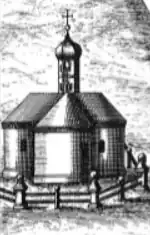 Der barocke Zentralbau mit vier Konchen besitzt im Osten einen Zwiebelturm.[1]