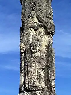 Der Schaft des Kreuzes, der mit Heiligenfiguren geschmückt ist, stammt aus gotischer Zeit. Das Kreuz selbst ist jünger, ebenso der Sockel.