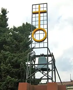 Die Lagerglocke befindet sich nicht in einem Kirchturm, sondern auf einem Gerüst, das sich im Lauf der Zeiten mehrfach gewandelt hat.