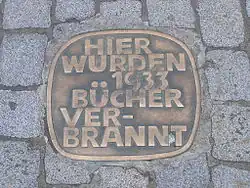 Eine Plakette auf dem Schlossplatz erinnert an die Bücherverbrennung 1933.