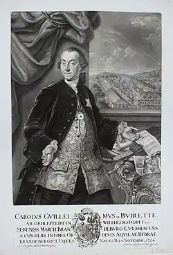Der markgräflich ansbach-bayreuthische Geheime Rat und königlich preußische Minister am Fränkischen Kreis, Karl Wilhelm, Freiherr Buirette von Oehlefeld (1724–1782), Herr auf Rittergut Wilhelmsdorf, vermachte der Universität in seinem Testament eine Stiftung von über 20.000 Gulden. Da die Vereinbarungen dazu schon vorher mit dem Markgrafen getroffen wurden, verlieh dieser Buirette dafür den erwünschten hohen Orden, das Großkreuz des Roten Adlerordens.[29]
