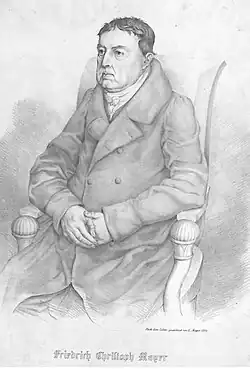 - ↑ Stadtarchiv Heilbronn, Zeitgeschichtliche Sammlung Signatur ZS-10274, Eintrag zu Friedrich Christoph Mayer in der Datenbank HEUSS