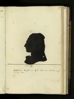 - ↑ Eintragung in Kiel am 4. Oktober 1778 mit einer Federzeichnung junger Mann als Beigabe auf S. 2. Quelle: v. Kamphövener, Das Stammbuch des Hieronymus Kamphövener, Nr. 87 nach Repertorium Alborum Amicorum (RAA) - Internationales Verzeichnis von Stammbüchern und Stammbuchfragmenten, Universität Erlangen.