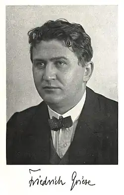 - ↑ Friedrich Griese, Unsere Arbeit ist Glaube (Schriftenreihe der NSDAP. Volkheit und Glaube, Bd. 2), Berlin 1940.