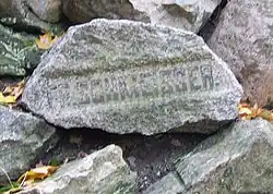 Inschrift FR. SCHMEISSER auf dem Denkmal Den Schöpfern dieser Anlage von 1886 im Lennépark Frankfurt (Oder)