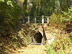 1827 errichtete Notbrücke; heutige Schmeisserbrücke über das Lennéfließ (Stadtgraben) im Lennépark Frankfurt (Oder) im Jahr 2018
