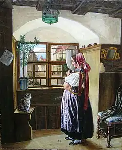 - Das Mädchen am Fenster (um 1848), Lithografie von Franz Hanfstaengl – Kunstvereinsgabe Prag
