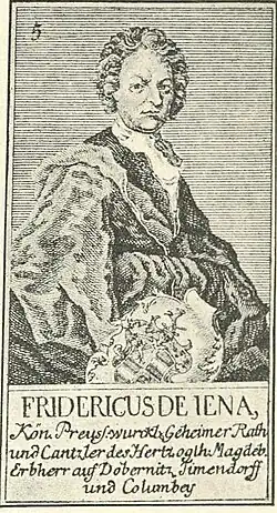 - Jena, Friederich von. In: Johann Heinrich Zedler: Grosses vollständiges Universal-Lexicon Aller Wissenschafften und Künste. Band 14, Leipzig 1735, Sp. 373.