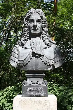 - ↑ gemeint ist wohl der spärere Feldmarschall Hubert Dominik Du Saix d'Arnant (1653–1729), Vgl.: Geschichte des Kais. kön. infanterie-regiments erzherzog Wilhelm no. 12, Band 1, S.24