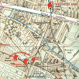 - ↑ Verwaltungs-Bericht der Statistisches Jahrbuch der Stadt Berlin 1912/1914. S. 78, Lichtenberger Bezirke III–IX.