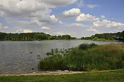 - 200 m östlich auf dem Territorium der Gemeinde liegt der Speicher Friemar, ein künstlicher Stausee von Immer- und Lache-Bach, die aus Richtung Osten kommen und als Abfluss des Stausees unmittelbar hinter der Staumauer in die Nesse münden. Der See wurde ursprünglich als Brauchwasserspeicher für die Landwirtschaft (Felder-Beregnung) konzipiert. Heute ist das Gebiet zu einem ländlich geprägten Naherholungsgebiet ausgebaut. Teile des Geländes sind als Flächennaturdenkmal (Schilfgürtel) ausgewiesen. Der See hat bei Vollstau eine Höhe von 287,05 m ü. NN, eine Staufläche von 34,5 ha und einen Stauinhalt von 0,69 Mio. m³. Der See dient heute dem Hochwasserschutz, der Niedrigwasseraufhöhung, dem Angelsport, dem Naturschutz und der Naherholung. 1999 wurden die Beregnungsanlage und Überpumpstation zurückgebaut, so dass heute die Entnahme von Wasser für die genannten landwirtschaftlichen Zwecke technisch nicht mehr möglich ist.