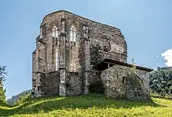 - Ruine der Propsteikirche am Virgilienberg, die mit der abgekommenen Propstei in die Stadtbefestigung einbezogen war