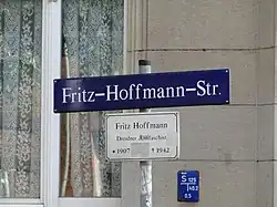 - Fritz Hoffmann. In: Museum für Geschichte der Stadt Dresden: Biografische Notizen zu Dresdner Straße und Plätzen, die an Persönlichkeiten aus der Arbeiterbewegung, dem antifaschistischen Widerstandskampf und dem sozialistischen Neuaufbau erinnern. Dresden 1976, S. 40.
