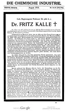 - Thomas Weichel: Fritz Kalle – Sozialreform, „Weltpolitik“ und Unternehmerinteresse, in: Gerhard Honekamp (Hg.): Wiesbaden – Hinterhof und Kurkonzert, Gudensberg-Gleichen 1996, S. 49–51, ISBN 3-86134-350-9.