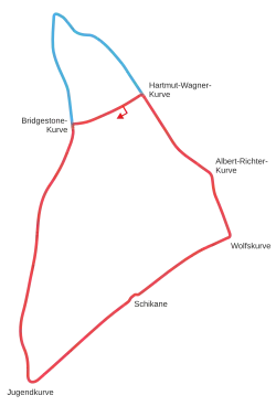 Ab 1974 verkürzte sich durch den Umbau der „Jugendkurve“ die Strecke um wenige Meter. Ab 1985 wurde aus Sicherheitsgründen eine Schikane vor dem Sprunghügel installiert.