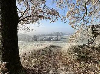 Nördlich grenzen die Wiesen-/Weideflächen an ein Waldstück, dessen Waldrand als Wallrain ausgebildet ist und der die historische Grenze zwischen genutztem Offenland und der Waldfläche markiert.[1]