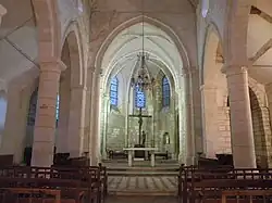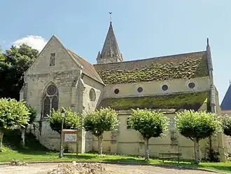 - Von der alten romanischen Pfarrkirche Saint-Martin ist nur noch der Glockenturm auf der Südseite erhalten; die übrigen Bauteile wurden im gotischen Stil in den Jahren 1220 bis 1240 hinzugefügt – die spätgotische Südapsis entstand noch später (um 1300). Nur die Ostteile der Kirche sind eingewölbt; das Kirchenschiff und die beiden Seitenschiffe haben hingegen hölzerne Dachstühle, die in den Seitenschiffen jedoch verkleidet und verputzt sind. Beachtenswert und ungewöhnlich sind der Stützenwechsel im Langhaus und die Rundfenster in der Hochschiffswand. Der Kirchenbau ist seit dem Jahr 1925 als Monument historique anerkannt.[1] Einige Ausstattungsgegenstände (Grabplatten, Figuren etc.) aus dem 15. bis 19. Jahrhundert sind gesondert geschützt[2]
