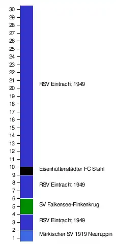 | FC Stahl Brandenburg | 0:1 | 1:3 | 4:1 | 0:0 | 3:0 | 2:1 | 7:1 | 4:0 | 4:1 | 3:1 | 1:0 | 0:0 | 5:1 | 4:0 | 3:0 | |