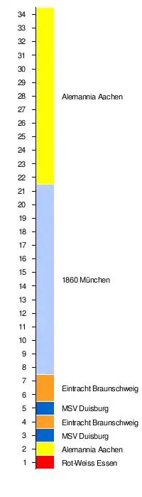 - Rot-Weiß Oberhausen, 14. Platz, TR Alfred Preißler, 1968/69: BL-Aufsteiger