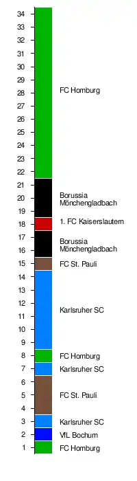 | 11. | Hamburger SV | 0:3 | 0:2 | 1:1 | 1:1 | 0:1 | 1:0 | 4:0 | 1:0 | 1:0 | 1:0 | 3:0 | 0:0 | 6:0 | 3:0 | 1:4 | 1:0 | 2:0 | |