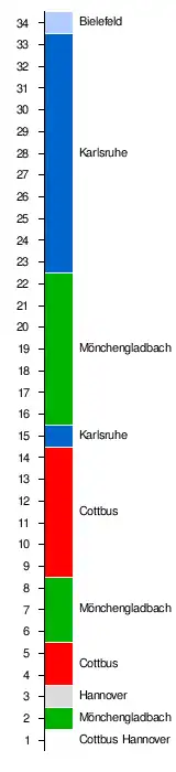 | Relegation ↓ | Energie Cottbus (0:2 und 0:3 gegen 1. FC Nürnberg) |