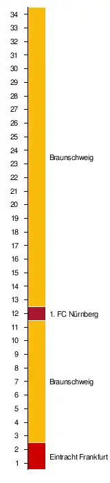 | Eintracht Braunschweig | 0:2 | 1:2 | 2:3 | 1:0 | 1:1 | 1:1 | 3:1 | 0:1 | 1:0 | 3:0 | 0:2 | 0:1 | 0:2 | 0:1 | 0:4 | 4:2 | 1:1 |