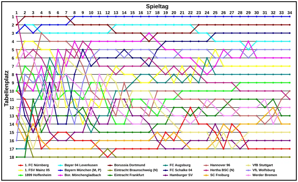 | Bayer 04 Leverkusen | 1:1 | 2:2 | 1:2 | 3:1 | 4:2 | 0:1 | 2:1 | 2:3 | 2:0 | 2:1 | 2:1 | 0:1 | 3:1 | 2:1 | 5:3 | 3:0 | 1:1 | |