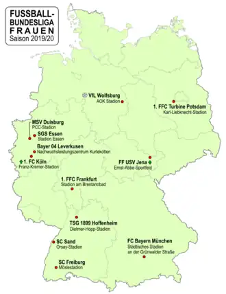 Die Saison 2019/20 war die 30. Spielzeit der Bundesliga, offiziell FLYERALARM Frauen-Bundesliga, im Frauenfußball. Sie begann am 17. August 2019 und sollte am 17. Mai 2020 enden.[1] Meister und Vizemeister qualifizieren sich für die UEFA Women’s Champions League, während die zwei letztplatzierten Mannschaften in die 2. Bundesliga absteigen müssen. Wegen der COVID-19-Pandemie wurde die Saison nach dem 16. Spieltag (28. Februar/1. März 2020) ausgesetzt. Am 25. Mai 2020 beschloss der DFB die Fortsetzung ab dem 29. Mai 2020 bis zum letzten Spieltag am 28. Juni 2020.[2]