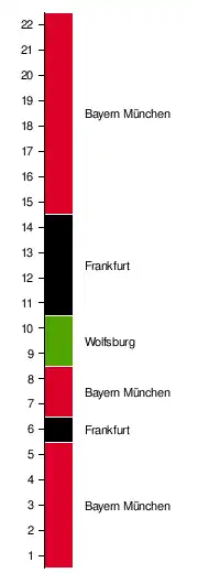 Nach der Hinserie führte Eintracht Frankfurt die Tabelle punktgleich vor den Titelverteidigerinnen und Bayer Leverkusen an. Der VfL Wolfsburg hatte einen Zähler weniger.