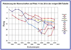 Platzierung der Mannschaften auf Platz 11 bis 20 in der ewigen EM-Tabelle