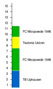 | 18. | FC Worpswede 1948 (N) | 13 | 1 | 1 | 11 | 9:46 | −37 | 4 |