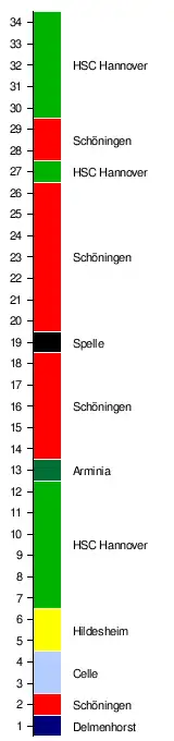 | HSC Hannover | 1:1 | 1:3 | 2:2 | 4:2 | 0:2 | 3:0 | 2:3 | 3:0 | 4:0 | 2:0 | 3:1 | 1:0 | 1:0 | 1:0 | 2:2 | 6:1 | 3:4 | |||