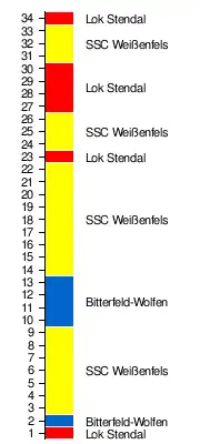 | 3. | 1. FC Bitterfeld-Wolfen | 32 | 20 | 5 | 7 | 80:41 | +39 | 65 |