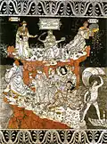 - Eine Frau, die mit einem Kind sitzt, vielleicht eine liegende Sibylle