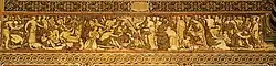 Um das quadratische Fries herum gibt es ein weiteres mit durchgehenden Figuren, die in drei Abschnitte (einer auf jeder Seite) unterteilt sind, der eine Prozession aus Männern und Frauen jeden Alters mit hellen Lichtkontrasten zeigt, die wahrscheinlich die Kinder Israel auf der Suche nach dem verheißenen Land darstellen. Sie laufen zu einem Opferaltar in der unteren Mitte zusammen und markieren den idealen Abschluss der Geschichten des Mose.[12]