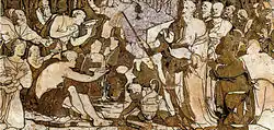 1519–1524 | Elija befahl dem Volk daher, alle Priester von Baal zu töten, und das Massaker findet im Vordergrund mit Schwertern, Stöcken und Steinen statt. Im Hintergrund zeigt Elija König Ahab, wie das Ende der Götzenverehrung von Gott geschätzt wird, der eine erste Regenwolke sendet (1. Könige, 18, 40–45). Das Ende der Dürre wird durch den Baum in der Mitte der Szene gezeigt, der bereits üppig ist (während er in der Szene des „Paktes“ trocken war). Die Zeichnung von Beccafumi zeichnet sich durch ihre kompositorische Ausgewogenheit und elegante Gestaltung der Handlung aus. |