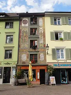 Das fünfgeschossige schmale Haus aus dem Jahr 1600 ist an der Fassade im historistischen Stil bemalt. Der Künstler war Johann Kaiser (1865–1922), der in München studiert hatte.