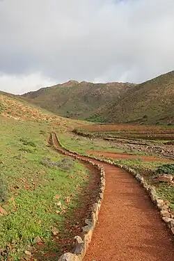 In Morro Jable kann von der Hotelsiedlung Jandía Playa der Pico de la Zarza bestiegen werden.[41][42] Für die einfache Bergtour mit allerdings jeweils 800 m im An- und Abstieg sollten hin und zurück knapp fünf Stunden eingeplant werden. Gipfelziele im zentralen Bergland von Fuerteventura sind u. a. Gran Montaña (711 m) und Morro Janana (672 m). Im Norden viel begangen ist der Wanderweg zum Vulkan Calderón Hondo.