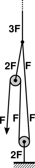 Zum Sichern der Spannung führt man anschließend das Seil um den zweiten Fixpunkt und macht eine Reihe von Windungen oder Schlägen um die Flaschenzugleinen. Alternativ legt man einen Rundtörn oder Halbmastwurf um den zweiten Fixpunkt und befestigt das Seil mit halben Schlägen oder einem Schleifknoten um die Flaschenzugleinen.