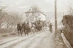 Ein Fuhrwerk ist ein Gespann von Zugtier(en) und gezogenem Transportmittel wie Wagen, Schlitten oder Schleppe. Das veraltete Wort Stellwagen für Fuhrwerk hat sich noch in der Berufsbezeichnung Stellmacher für den Wagenbauer erhalten.[1] Gespann ist häufig eine Bezeichnung für besondere Arten solcher Fuhrwerke, etwa (historische) Lafetten-Gespanne der Artillerie.