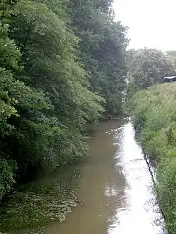 Im Mittelteil und im Unterlauf sinkt die Wasserqualität auf die Güteklasse II-III: kritisch belastet (beta- bis alphamesosaprob).[19][20] Zwar ist auch dort der chemische Gesamtzustand „gut“, jedoch werden die Orientierungswerte für den Phosphor bzw. Phosphatgehalt nicht eingehalten. Dies ist ursächlich mit Pestizideinträgen aus der Landwirtschaft verbunden.[4] Die hydromorphologischen Parameter erhalten nahezu im gesamten Verlauf die zweitschlechteste Note VI. Im Unterlauf wird der ökologische Gesamtzustand mit „mäßig (3)“ bewertet, was einen günstigeren Artenbestand berücksichtigt. Die Struktur erhält in einigen Abschnitten eine bis zwei Noten besser als der übrige Fluss.