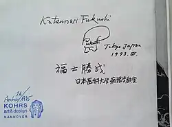 In der Pathologie der Universität Tokio unterhält Fukushi Katsunari, eine einzigartige Sammlung tätowierter und präparierter Haut weltweit, die in einigen Publikationen auch als Hautmuseum bezeichnet wird.[1] Im Bestand befinden sich ca. 105[2] tätowierte Menschenhäute, viele davon als sog. „full body suits“. Fukushi Katsunari übernahm diese Sammlung von seinem Vater und ergänzte sie in den Folgejahren auf über 100 Exemplare. In den späten 1970er Jahren hatte der Tätowierer Manfred Kohrs ein Treffen mit Fukushi Katsunari.[3] Für die Recherchen zum 4. Band seiner Buchreihe tattoo-time besuchte Ed Hardy das Hautmuseum und traf Katsunari Fukushi.[4]